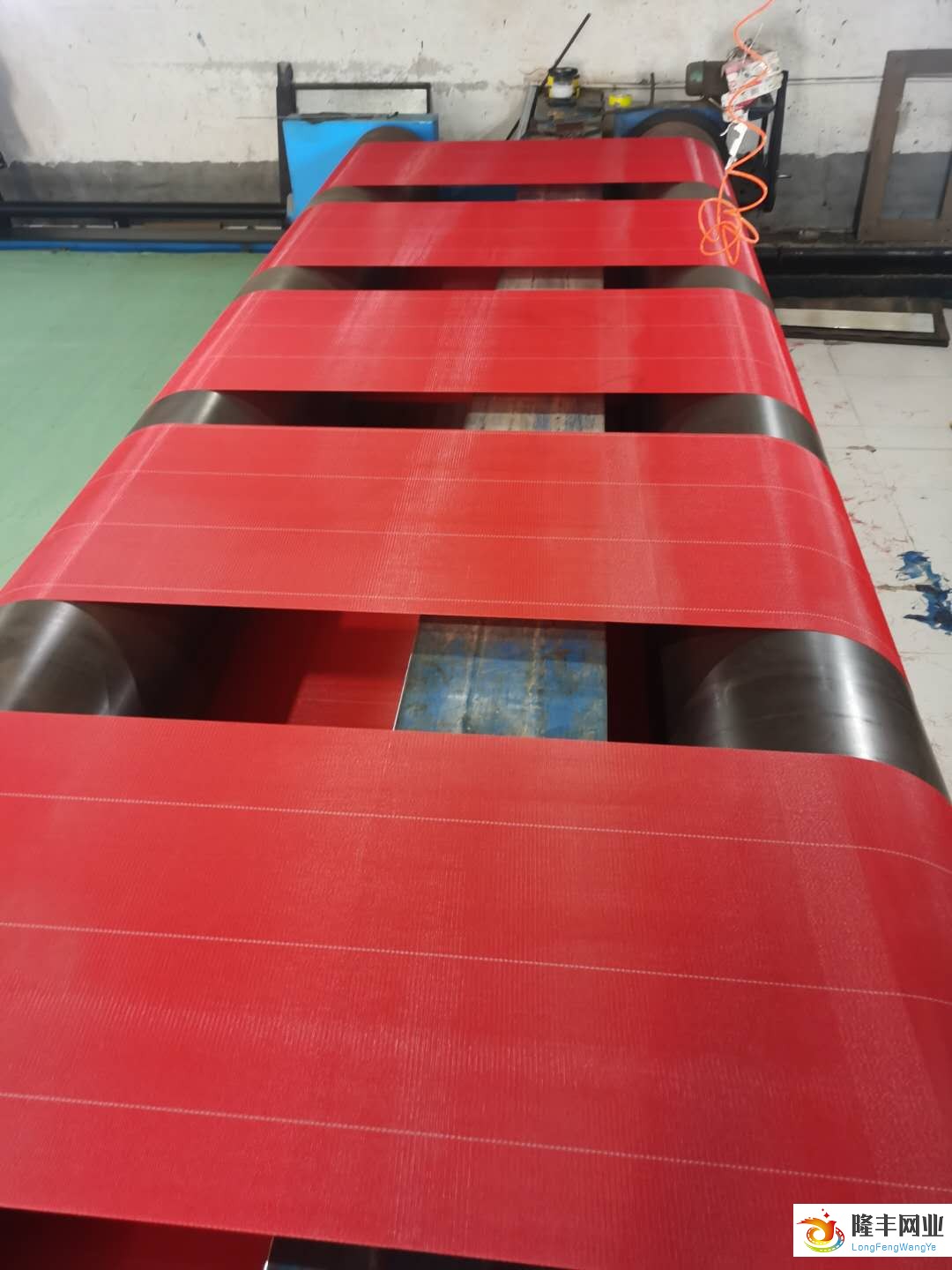 該款材質(zhì)是聚酯PET,產(chǎn)品名熔噴布網(wǎng)簾,熔噴布網(wǎng)帶,防粘熔噴布網(wǎng)簾,耐高溫紅色無(wú)紡布網(wǎng)簾,也叫無(wú)紡布網(wǎng)簾??赡透邷?,常溫160°-180°,絲的熔點(diǎn)在240°,通常生產(chǎn)時(shí)進(jìn)行一次,二次定型時(shí),定型溫度不超過(guò)220°,符合熔噴布設(shè)備對(duì)網(wǎng)簾耐高溫的要求。網(wǎng)簾透氣性良好,厚度適中,網(wǎng)面平整,壓痕小,接口采用無(wú)端也叫無(wú)縫接口,整體網(wǎng)面平整,無(wú)縫一體成型,套網(wǎng)方便。